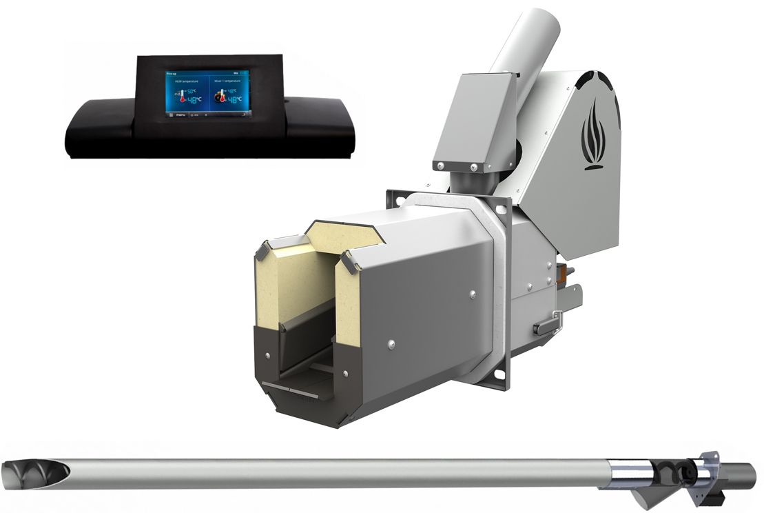 Komplektis on põleti, automaatika ja etteandetigu 1,5 m